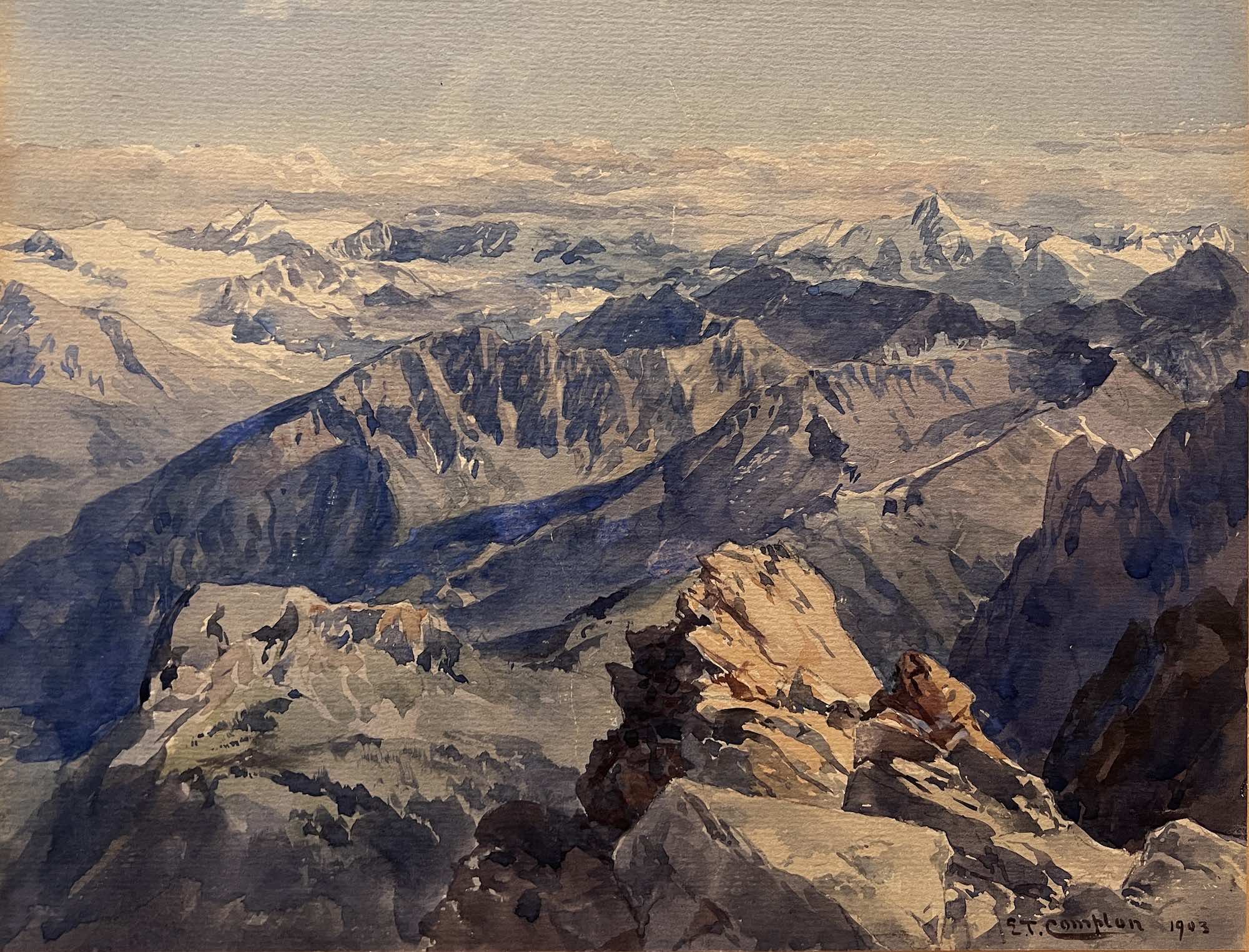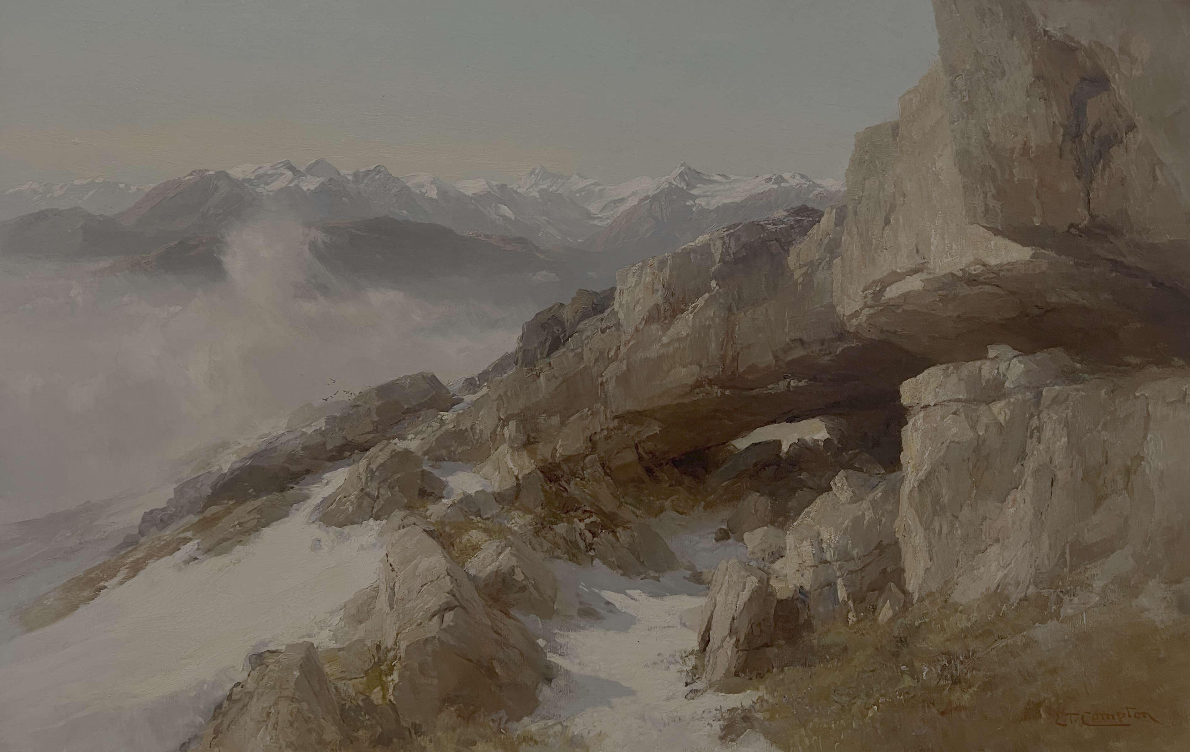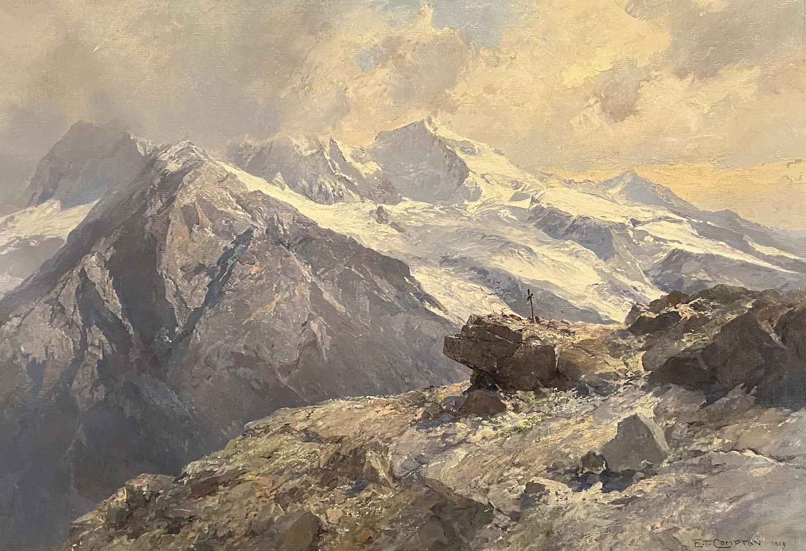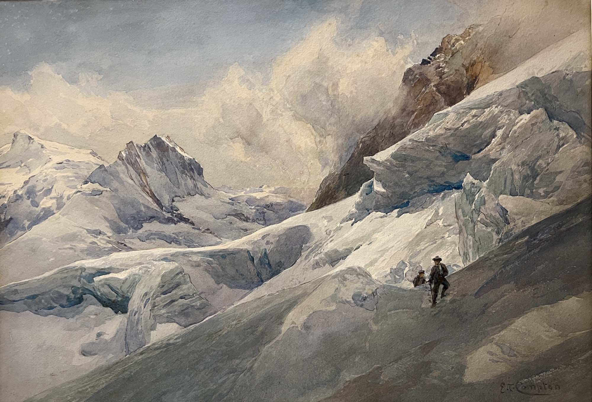 - 1868: Die ganze Familie reist zum Thuner See in der Schweiz. Beeindruckt von den gewaltigen Bergen Eiger, Mönch und Jungfrau, beschließt der 19-jährige Bergmaler zu werden. Mit beeinflusst wird Compton von seiner Zeit. Der aufkommende Alpinismus, Erstbesteigungen, wie die spektakuläre Erklimmung des Matterhorns von Comptons Landsmann Edward Whymper und der beginnende Tourismus im Alpenraum, haben entscheidendes Gewicht bei dem Entschluss selbst Teil dieser Entwicklung zu sein.