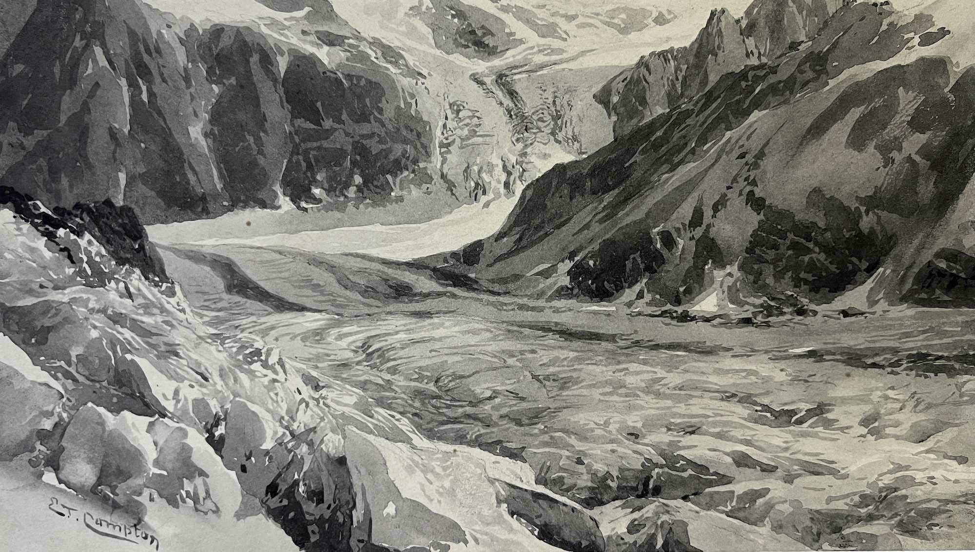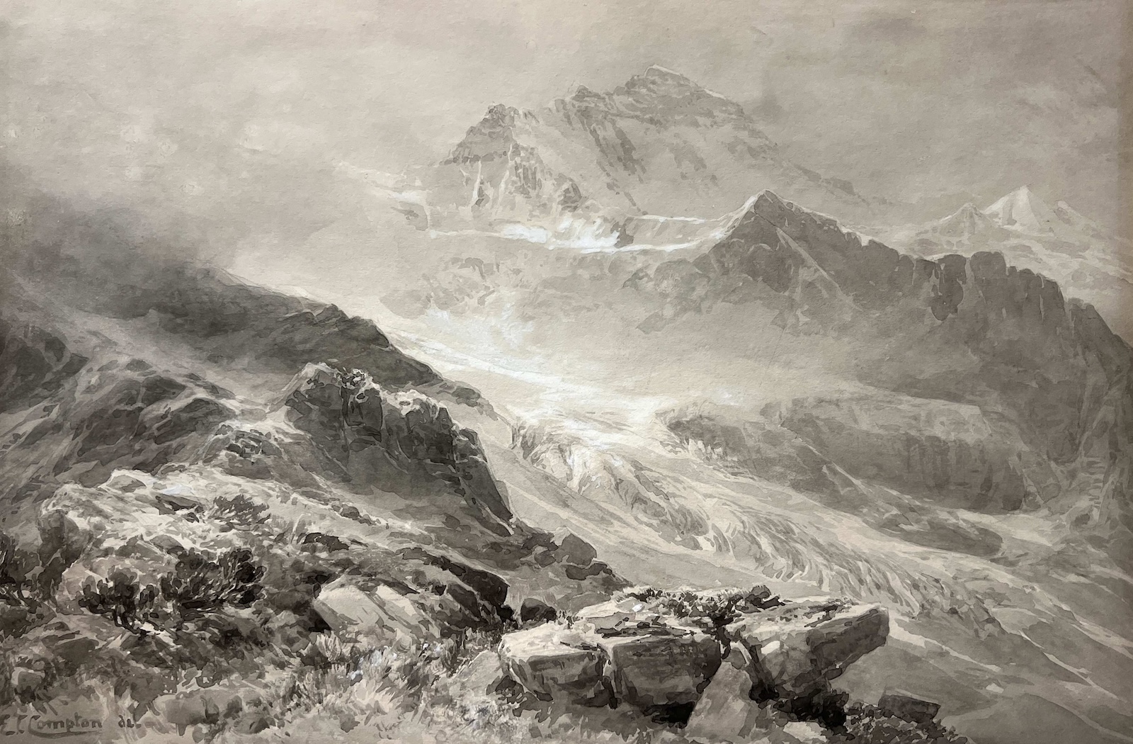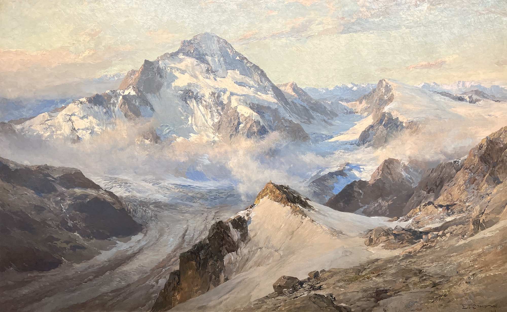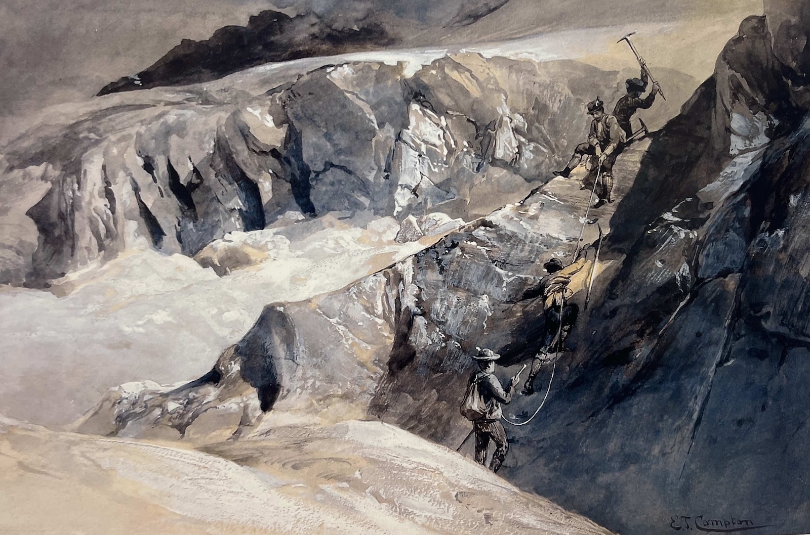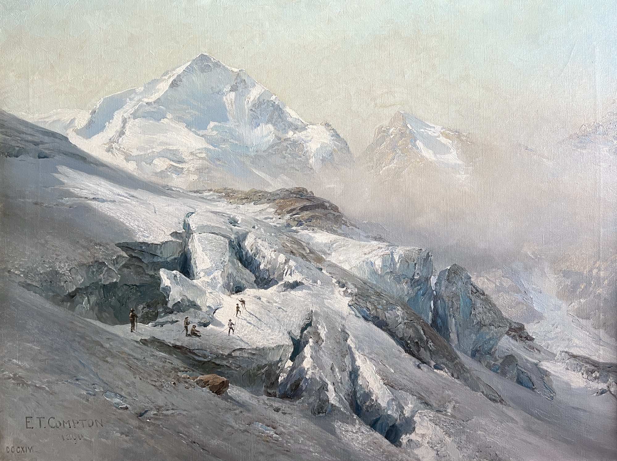 - 1868: Die ganze Familie reist zum Thuner See in der Schweiz. Beeindruckt von den gewaltigen Bergen Eiger, Mönch und Jungfrau, beschließt der 19-jährige Bergmaler zu werden. Mit beeinflusst wird Compton von seiner Zeit. Der aufkommende Alpinismus, Erstbesteigungen, wie die spektakuläre Erklimmung des Matterhorns von Comptons Landsmann Edward Whymper und der beginnende Tourismus im Alpenraum, haben entscheidendes Gewicht bei dem Entschluss selbst Teil dieser Entwicklung zu sein.
