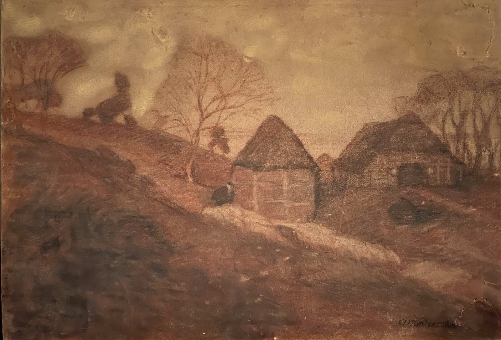 Vor allem findet er Anstoß und Inspiration in der Schule von Barbizon. Maler wie Jean-Baptiste Camille Corot (1796 – 1875) Théodore Rousseou (1812 – 1867), all jene die in der ersten Hälfte des 19 Jahrhunderts, die Landschaft und das Malen unter freiem Himmel für sich entdeckten, nehmen starken Einfluss auf Otto Modersohn. Reisen, wie beispielsweise 1886 in den Harz, 1888 mit dem Studienfreund Fritz Mackensen (1866 – 1953) durch Westfalen, schulen seine Naturbeobachtung. Das frühe Werk umfasst kleinformatige Freilichtstudien in Öl oder Bleistift, von naturalistischer Detailgenauigkeit und einer gedämpften, zurückhaltenden Farbigkeit. Nach einem weiteren Studium an der Kunstakademie Karlsruhe über den Winter 1888/89, folgt er erstmals Mackensen in das niedersächsische Dorf Worpswede. Mit Hans am Ende (1864 – 1918), den er von München her kennt, entschließen sie sich im Herbst 1889 zum dauernden Aufenthalt auf dem Land. Sie gründen die Worpsweder Malervereinigung, der sich später Carl Vinnen (1863 – 1922), Fritz Overbeck (1869 – 1909) und Heinrich Vogeler (1872 – 1942) anschließen. In den ersten Worpsweder Jahren setzt Otto Modersohn seine Freilichtmalerei fort, wobei er ausdrücklich Bezug und Anregung in der Schule von Barbizon findet.